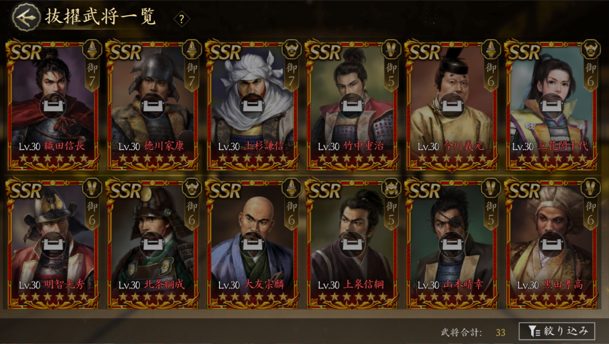 所持しているSSR武将12名を選択して預けることで、「抜擢」武将を使用可能になります。