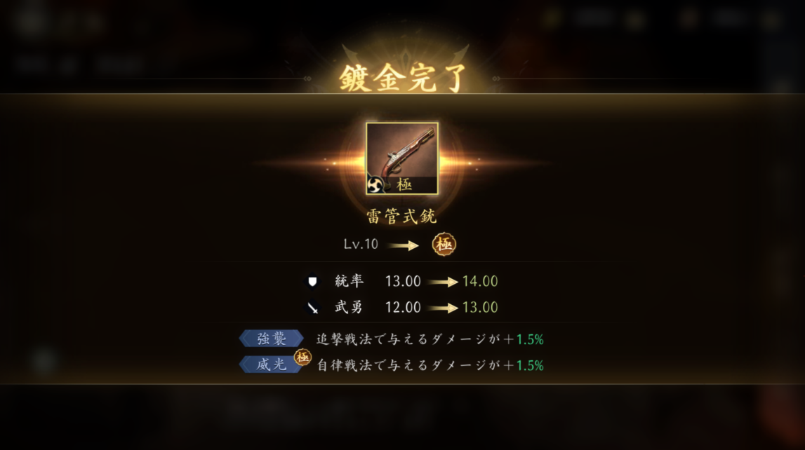 Lv10の珍品装備を、砂金を消費して「極」に強化できます。