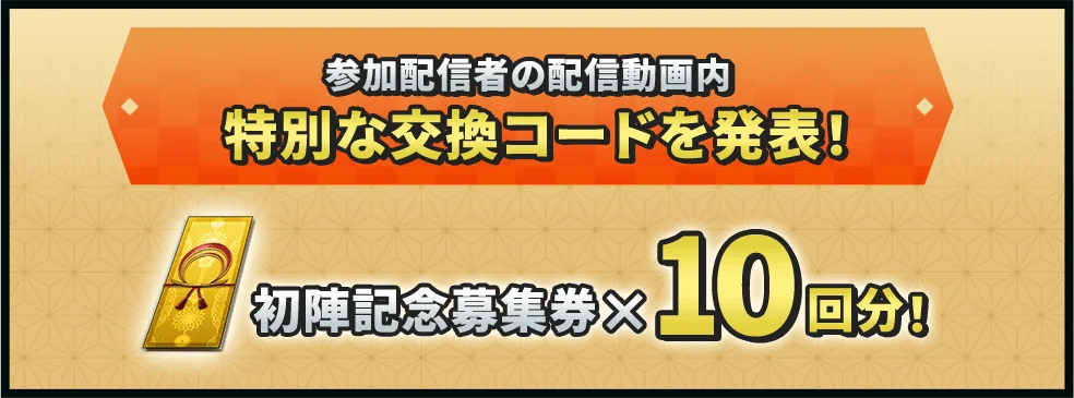 ※2025年12月22日~2026年1月12日の間で参加配信者が配信動画内でコードを発表いたします。