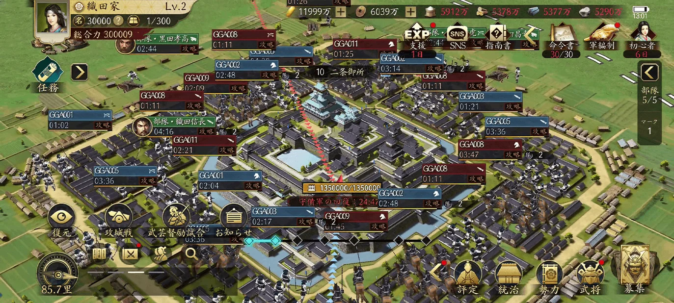 所属サーバー内の全プレイヤーと一緒に目標を達成する「天下布武」をはじめとした戦国の世を体感できるイベントが続々登場!部隊の編制や、武将に習得させる戦法の組み合わせは多岐に渡り、戦略の幅が広がります。